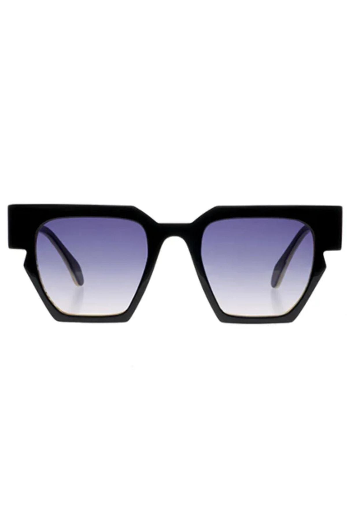 Utilising the flat top forming into smooth curves and triangle cutout details on front frame and temple of Triage we have enlarged it to make this bold statement frame, in turn paying Homage to Triage.
