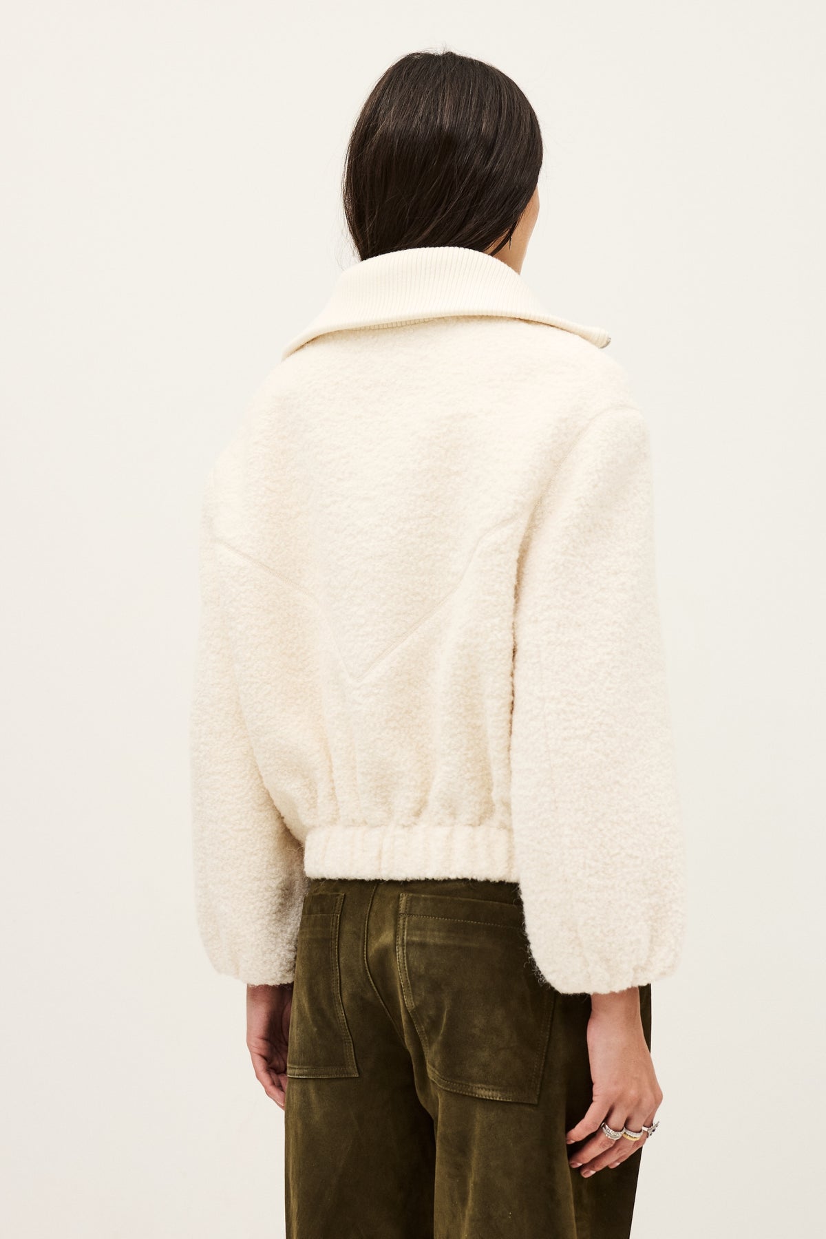 - Bomber jacket with ribbed lapel collar - Concealed zip fastening under central front placket - Piped front pockets with flaps - Elasticated cuffs and hem to create a puffed effect - Comfortable fit