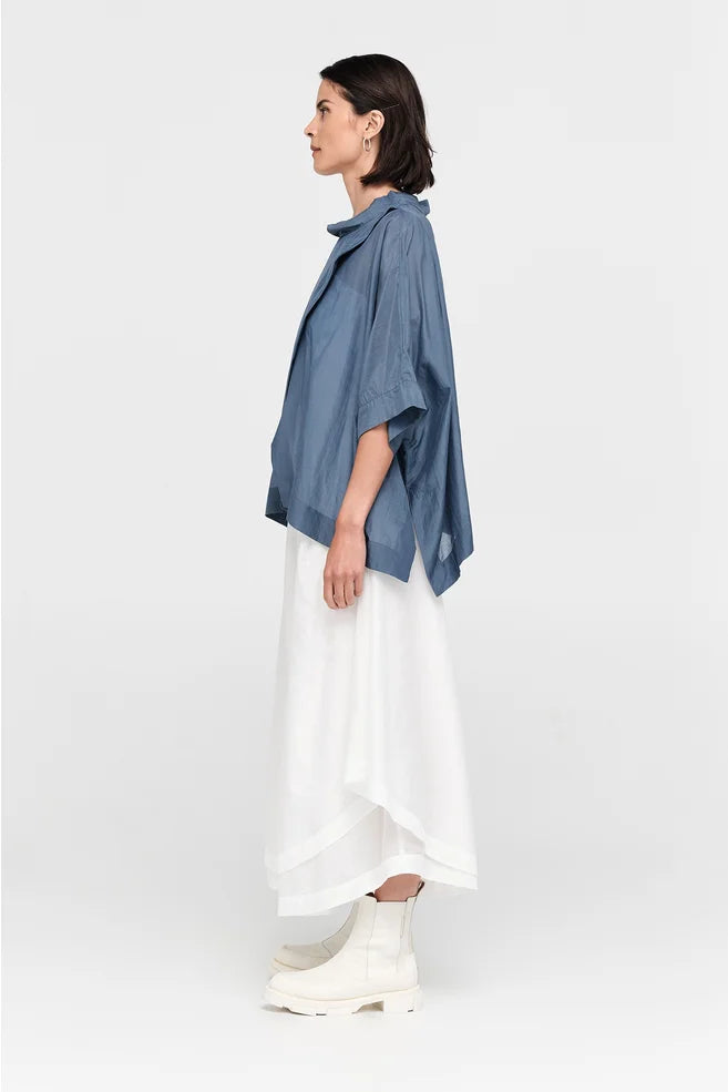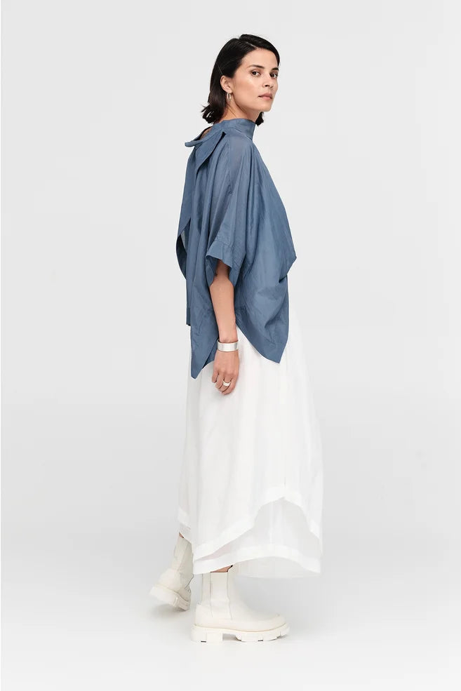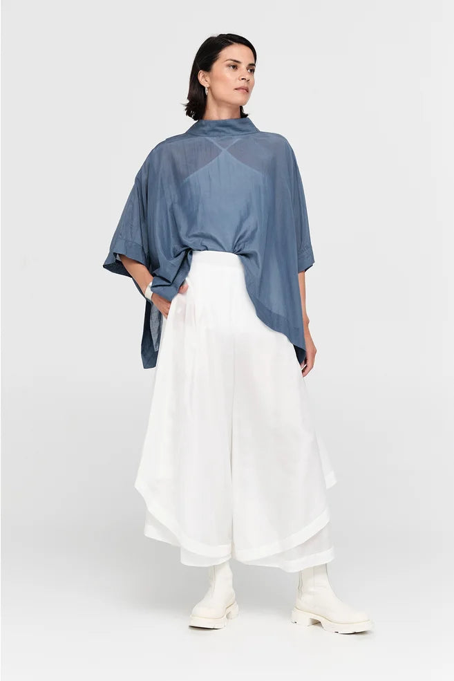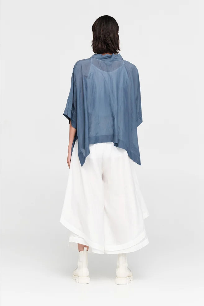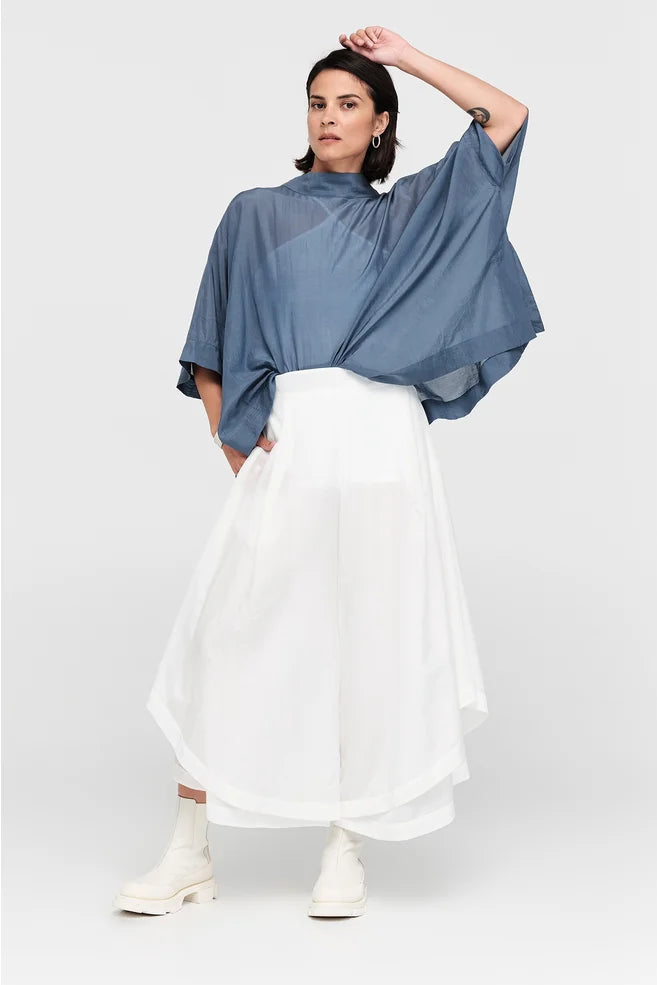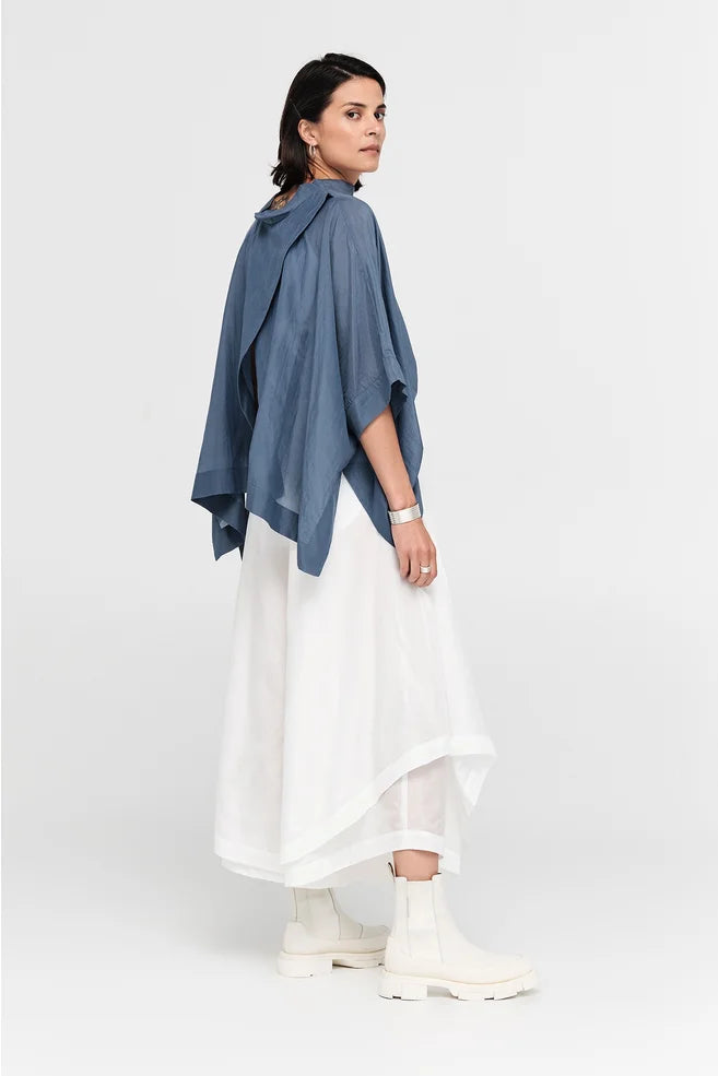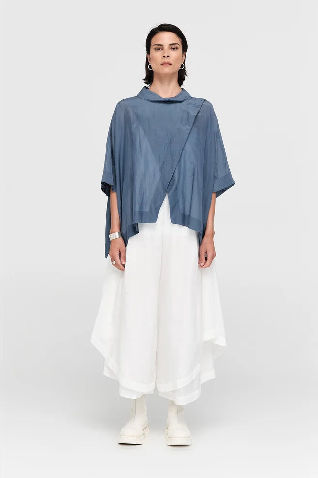 The Vortex Top, this season crafted from 100% silk, is the kind of piece you’ll reach for when you want effortless style with a twist. Its soft drape and crossover panel create a beautiful, flowing shape with an asymmetrical hem that is flattering on the figure. Designed to be reversible, you can wear the crossover at the front or back for two distinct looks.