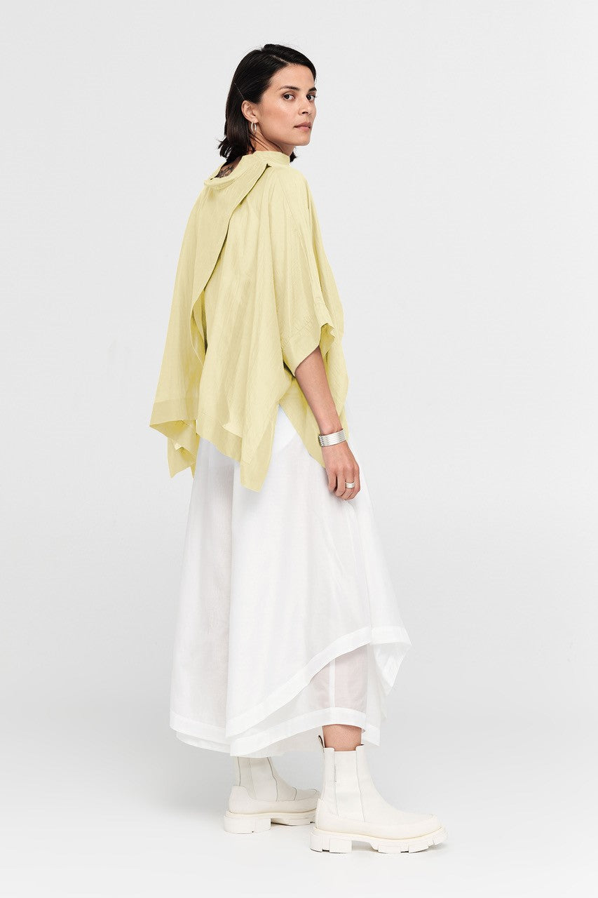 The Vortex Top, this season crafted from 100% silk, is the kind of piece you’ll reach for when you want effortless style with a twist. Its soft drape and crossover panel create a beautiful, flowing shape with an asymmetrical hem that is flattering on the figure. Designed to be reversible, you can wear the crossover at the front or back for two distinct looks.